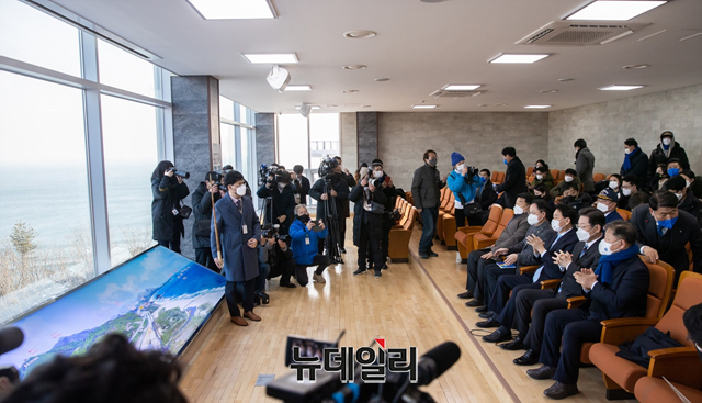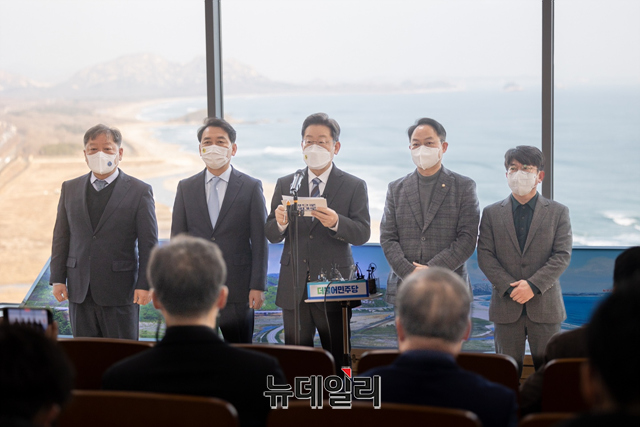 이 후보는 '금강산 관광 재개 및 DMZ 관광 추진, 남북 철도 및 도로 연결' 등 강원도 공약을 발표했다. (사진=이재명 캠프)