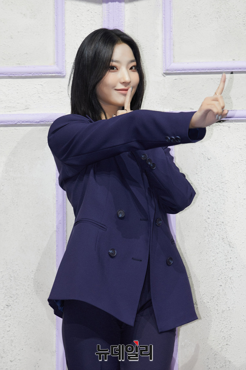 걸그룹 프로미스나인 멤버 이새롬이 17일 오후 서울 용산구 블루스퀘어 마스터카드홀에서 열린 미니 4집 앨범 '미드나잇 게스트(Midnight Guest)' 발매 기념 쇼케이스에서 포즈를 취하고 있다.