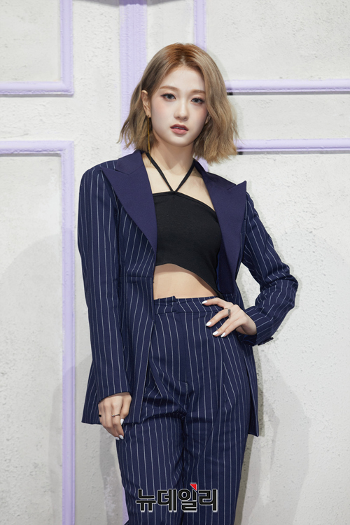 걸그룹 프로미스나인 멤버 이서연이 17일 오후 서울 용산구 블루스퀘어 마스터카드홀에서 열린 미니 4집 앨범 '미드나잇 게스트(Midnight Guest)' 발매 기념 쇼케이스에서 포즈를 취하고 있다.