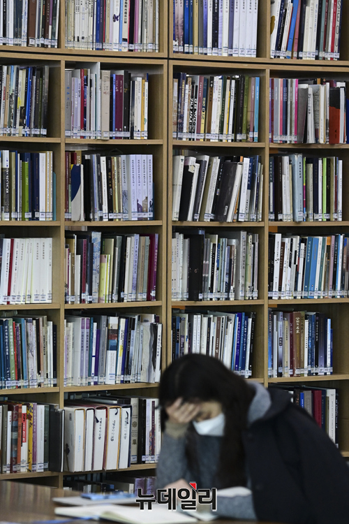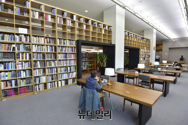 정부가 방역패스(접종증명·음성확인제) 개선방안을 시행한 18일 오후 서울 용산구 국립중앙박물관 도서관을 찾은 시민들이 독서를 하고 있다.