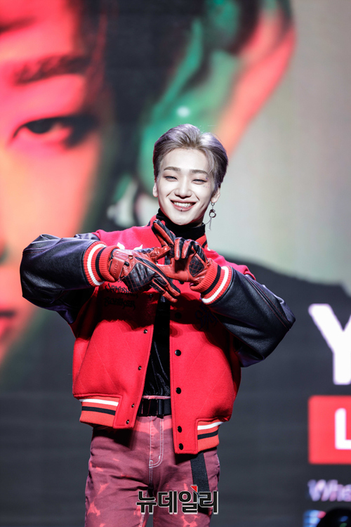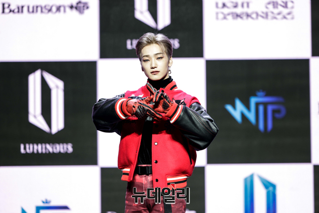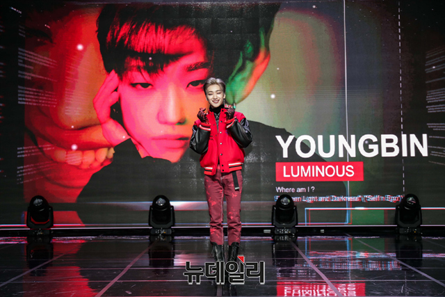 아이돌그룹 루미너스 멤버 영빈이 19일 오후 온라인으로 열린 두 번째 미니앨범 '빛과 어둠 사이(Self n Ego)' 발매 기념 쇼케이스에서 포즈를 취하고 있다.'빛과 어둠 사이'는 '나는 어디에 있는가'라는 주제로 진정한 자신과 가면처럼 만들어진 자아 사이의 혼란과 고민을 다룬 앨범이다.