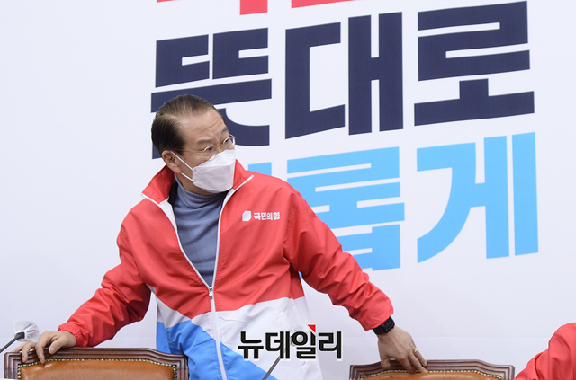 권영세 국민의힘 선거대책본부장이 20일 오전 국회에서 열린 선거대책본부-원내지도부 연석회의에 참석하고 있다. (사진=공동취재단)