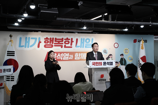 윤석열 국민의힘 대선후보가 20일 오전 서울 여의도 국민의힘 당사에서 연말정산‧반려동물‧양육지원 등 공약을 발표하고 있다. (사진=윤석열 캠프)