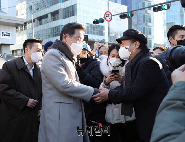 이재명 더불어민주당 대선 후보가 21일 서울 마포구 연남동 거리에서 열린 '걸어서 민심 속으로' 연남동 거리 걷기 행사에서 시민들과 인사를 나누고 있다. (사진=이재명 캠프)
