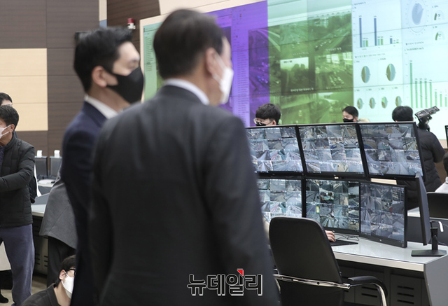 충청지역을 방문중인 윤석열 국민의힘 대선후보가 22일 오전 세종도시통합정보센터를 방문해 시설을 둘러보고 있다. (사진=윤석열 캠프)