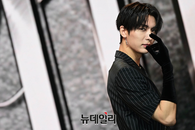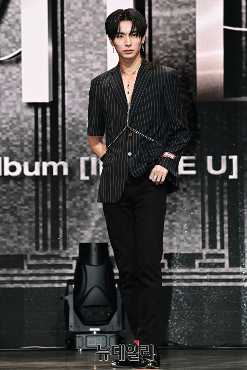 아이돌그룹 펜타곤 멤버 유토가 24일 오후 서울 광진구 예스24 라이브홀에서 열린 열두 번째 미니앨범 '인바잇유(IN:VITE U)' 발매 기념 쇼케이스에서 포즈를 취하고 있다.