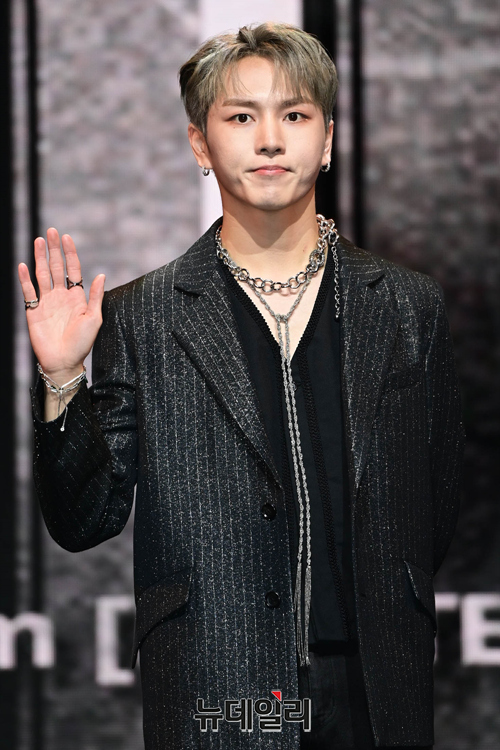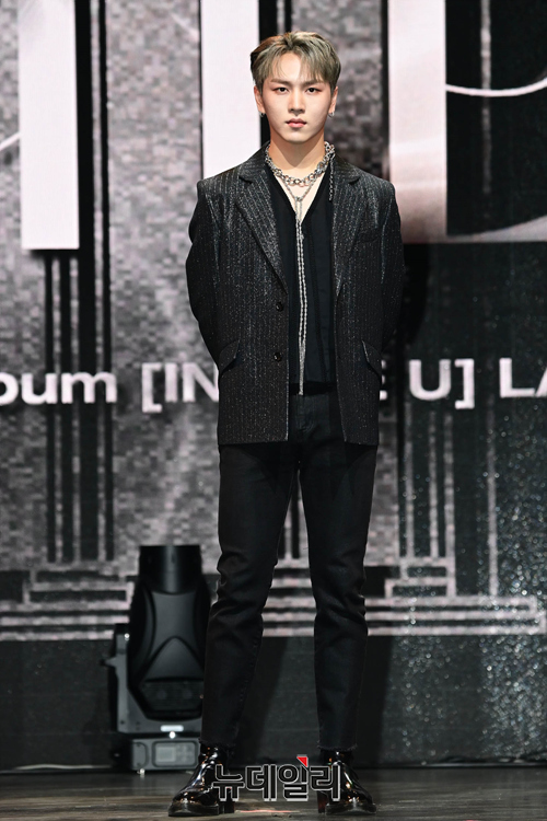아이돌그룹 펜타곤 멤버 키노가 24일 오후 서울 광진구 예스24 라이브홀에서 열린 열두 번째 미니앨범 '인바잇유(IN:VITE U)' 발매 기념 쇼케이스에서 포즈를 취하고 있다.