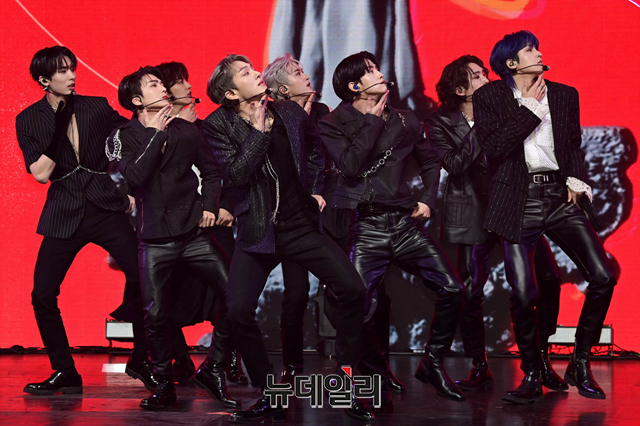 아이돌그룹 펜타곤(진호, 후이, 홍석, 신원, 여원, 옌안, 유토, 키노, 우석)이 24일 오후 서울 광진구 예스24 라이브홀에서 열린 열두 번째 미니앨범 '인바잇유(IN:VITE U)' 발매 기념 쇼케이스에서 무대를 선보이고 있다.'인바잇유'는 펜타곤이 마주한 새로운 세계로의 초대해 그곳에서 만난 너에게 빠르게 빠져든다라는 뜻을 담긴 앨범으로 타이틀곡 '필린라이크'를 포함해 '한탕' '더 게임' '콜 마이 네임' '관람차' '배드'까지 총 6곡이 수록됐다. 음원은 오후 6시 공개.
