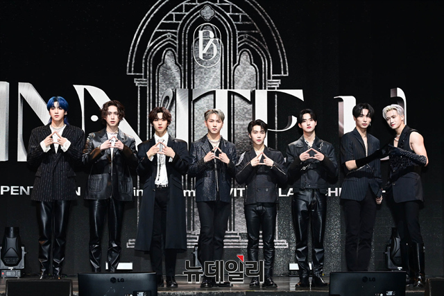 아이돌그룹 펜타곤 (우석, 신원, 홍석, 키노, 진호, 여원, 유토, 옌안)이 24일 오후 서울 광진구 예스24 라이브홀에서 열린 열두 번째 미니앨범 '인바잇유(IN:VITE U)' 발매 기념 쇼케이스에서 포즈를 취하고 있다.'인바잇유'는 펜타곤이 마주한 새로운 세계로의 초대해 그곳에서 만난 너에게 빠르게 빠져든다라는 뜻을 담긴 앨범이다.타이틀곡 '필린라이크'를 포함해 '한탕' '더 게임' '콜 마이 네임' '관람차' '배드'까지 총 6곡이 수록됐다. 음원은 오후 6시 공개.