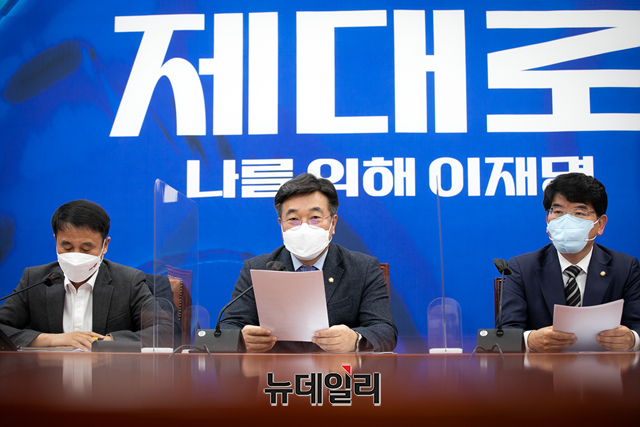 윤호중 더불어민주당 원내대표가 25일 오전 국회에서 열린 원내대책회의에서 모두발언을 하고있다. (사진=공동취재단)