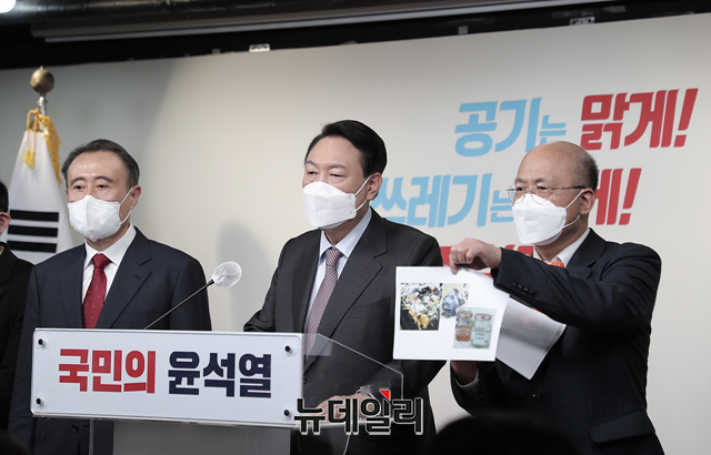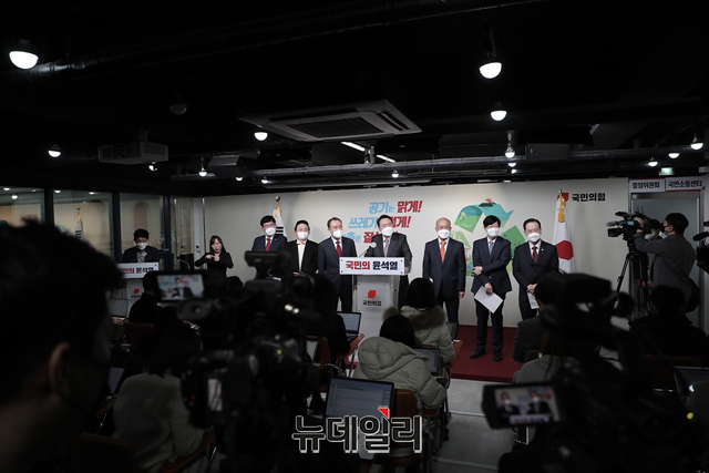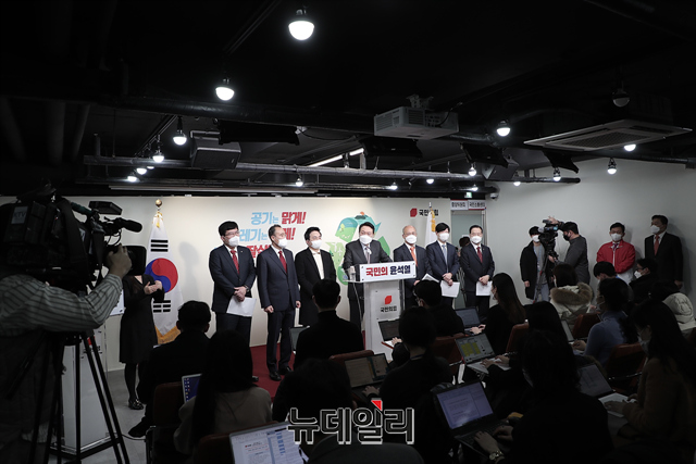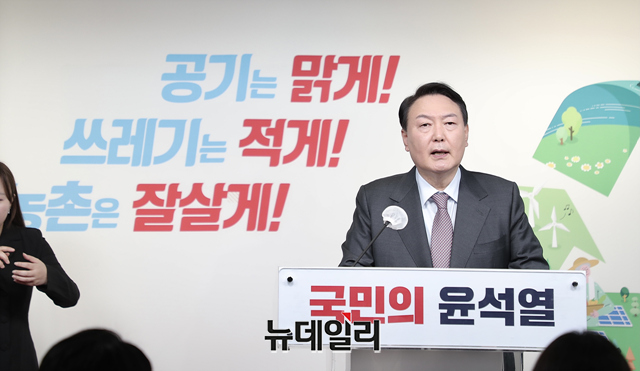 윤석열 국민의힘 대선후보가 25일 오전 서울 여의도 국민의힘 당사에서 환경·농업·스포츠 관련 부분 공약 발표를 하고 있다. (사진=윤석열 캠프)