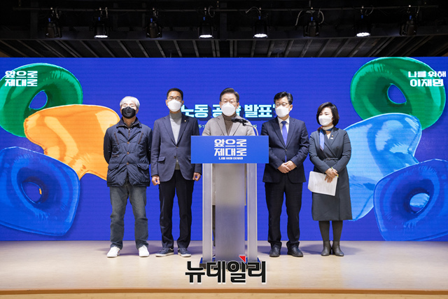 이재명 더불어민주당 대선후보가 26일 경기 부천시 근로자종합복지관에서 노동공약을 발표하고 있다. (사진=이재명 캠프)
