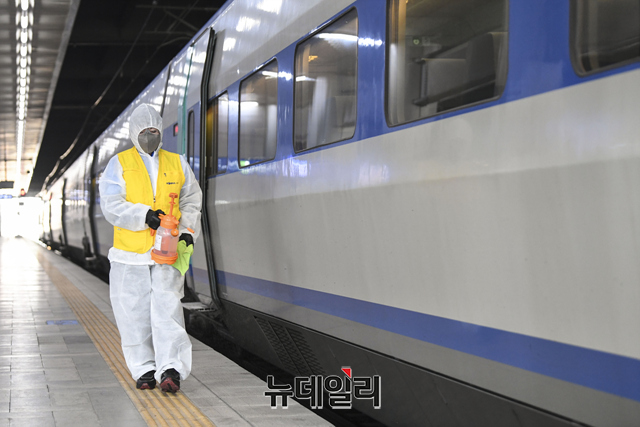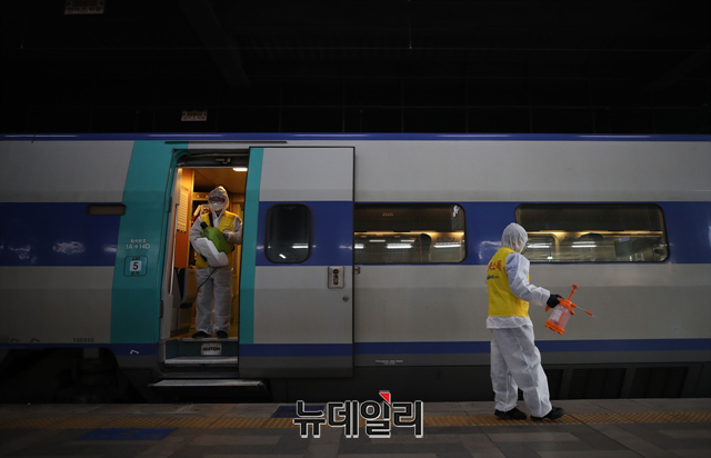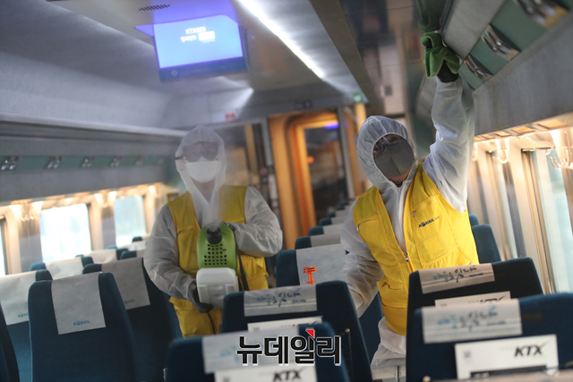 [포토] 설날 앞두고 KTX 방역작업하는 코레일