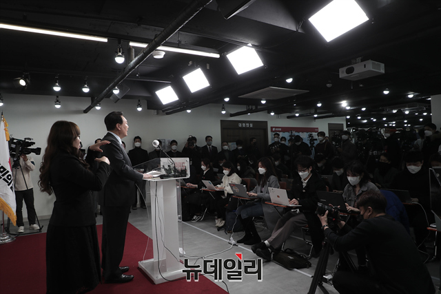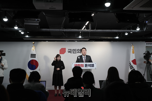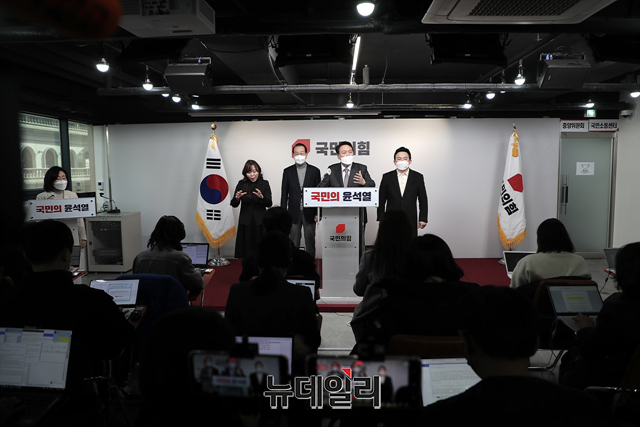 윤석열 국민의힘 대선후보가 27일 오전 서울 여의도 중앙당사에서 열린 정치 분야 공약 발표에서 발언을 하고 있다. (사진=윤석열 캠프)