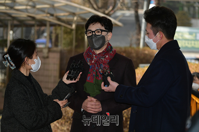 한동훈 사법연수원 부원장(검사장)이 27일 서울 마포구 서부지법에서 열린 유시민 전 노무현재단 이사장의 명예훼손 혐의 재판에 증인으로 출석하고 있다.유 전 이사장은 지난 2019년 12월24일 유튜브 채널 '알릴레오'에서 "검찰이 노무현재단 은행 계좌를 들여다본 것을 확인했고, 제 개인계좌도 다 들여다봤을 것으로 짐작한다" 등의 발언으로 한 검사장의 명예를 훼손한 혐의를 받고 있다.이날 한 검사장은 "제가 바라는 것은 유시민 씨 등 누구든 죄가 있으면 벌 받는 것"이라며 "저는 유 씨나 노무현재단의 계좌 추적을 한 적이 전혀 없다"고 밝혔다.