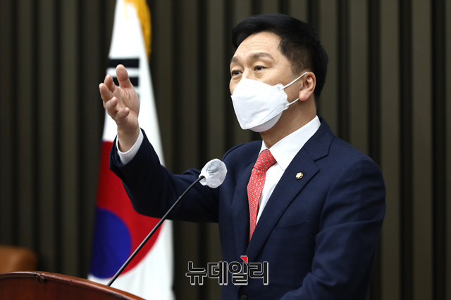김기현 국민의힘 원내대표가 27일 오후 국회에서 열린 의원총회에서 발언을 하고 있다. (사진=공동취재단)