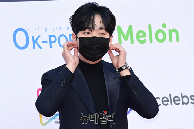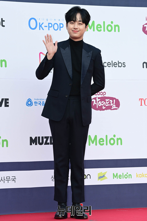 가수 이찬원이 27일 오후 서울 송파구 잠실 실내체육관에서 열린 '가온차트 뮤직 어워즈' 포토월에서 포즈를 취하고 있다.