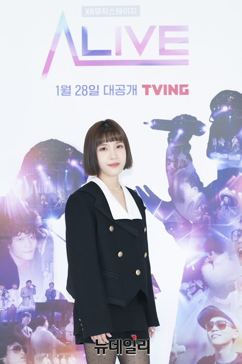 가수 김나영이 27일 오후 온라인으로 열린 티빙 오리지널 '얼라이브(연출 이선우)' 제작발표회에서 포즈를 취하고 있다.