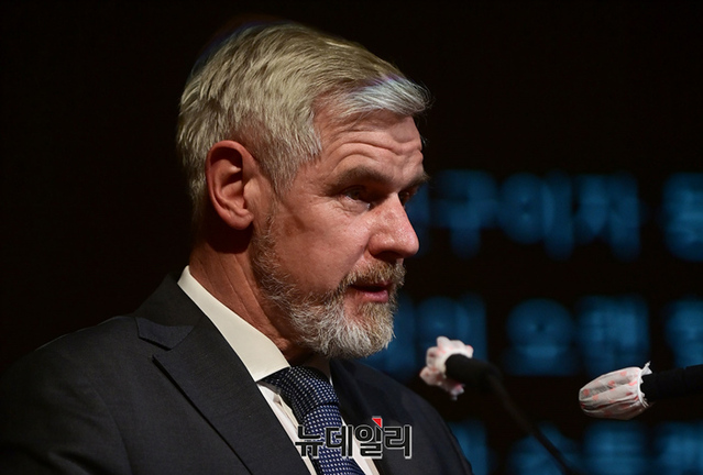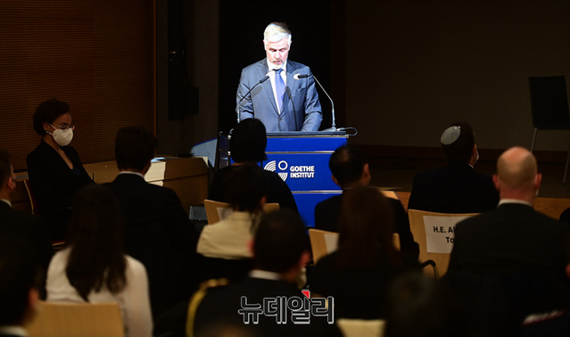 미하엘 라이펜슈툴 주한독일 대사가 27일 오후 서울 용산구 주한독일문화원에서 열린 '2022 국제 홀로코스트 희생자 추모행사'에 참석해 인사말을 하고 있다.'국제 홀로코스트 희생자 추모의 날'은 2945년 1월 27일 아우슈비츠 강제수용소에 갇혀 있던 유대인, 양심수, 사회적 소수자들이 해방을 맞은 날로 나치 독일에 의해 학살당한 희생자를 기리는 날이다.추모행사에는 오세훈 서울시장, 아키바 토르 주한이스라엘 대사, 미하엘 라이펜슈툴 주한독일 대사 등이 참석했다.