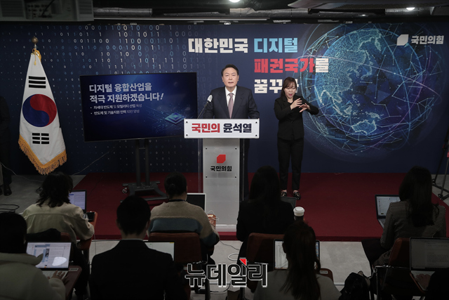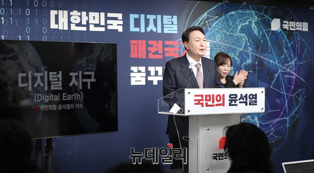 윤석열 국민의힘 대선후보가 28일 오전 서울 여의도 중앙당사에서 열린 '디지털 지구(Digital Earth) 시대' 대한민국 디지털 경제 비전발표에서 발언하고 있다. (사진=윤석열 캠프)