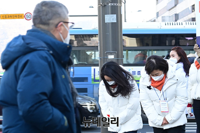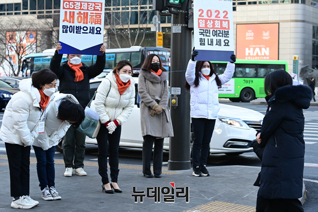 안철수 국민의당 대선후보의 부인 김미경 교수와 자녀 안설희 박사가 3일 오전 서울 종로구 광화문역 근처에서 출근하는 시민들에게 지지를 호소하며 인사를 하고 있다.