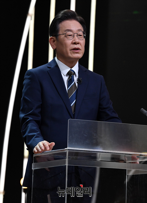 이재명 더불어민주당 대통령 후보가 3일 오후 서울 영등포구 KBS 공개홀에서 열린 지상파 방송 3사(KBS·MBC·SBS) 합동 초청 대선후보 토론회에서 발언을 하고 있다. (사진=공동취재단)
