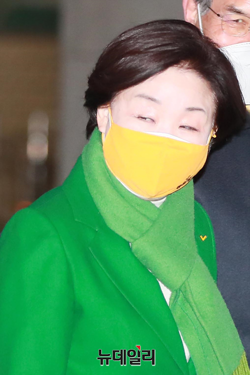 심상정 정의당 대선후보가 3일 밤 서울 여의도 KBS 공개홀에서 진행된 지상파 방송 3사(KBS·MBC·SBS) 합동 초청 대선후보 토론회에 이동하고 있다.