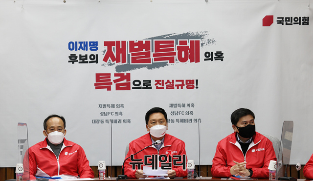 김기현 국민의힘 원내대표가 4일 오전 국회에서 열린 원내대책회의에 참석해 모두발언을 하고 있다. (사진=공동취재단)