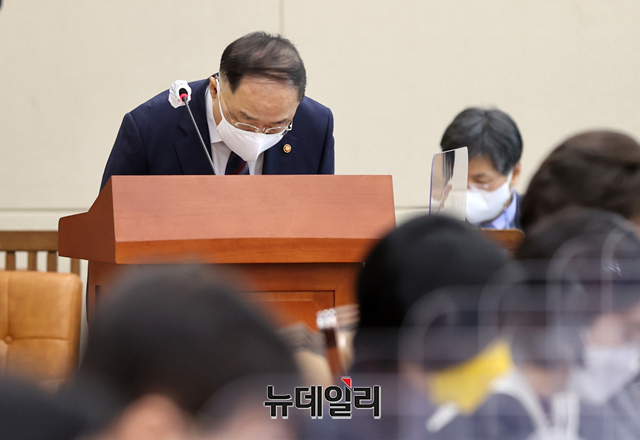 홍남기 경제부총리 겸 기획재정부 장관이 4일 오전 국회에서 열린 기획재정위원회 전체회의에서 새해 추가경정예산안 관련 제안설명을 하고 있다. (사진=공동취재단)