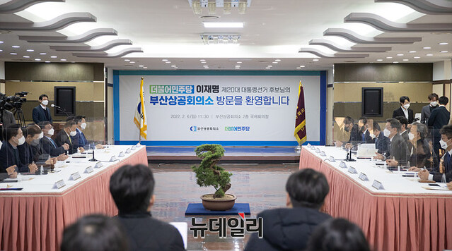 이재명 더불어민주당 대선후보가 6일 오후 부산 부산진구 부산상공회의소를 방문해 발언하고 있다. (사진=이재명 캠프)