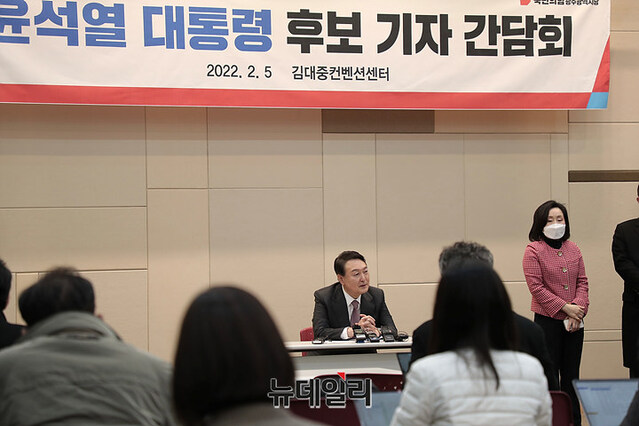 윤석열 국민의힘 대선후보가 6일 오후 광주 서구 김대중컨벤션센터에서 열린 지역 언론인 간담회에서 발언하고 있다. (사진=윤석열 캠프)