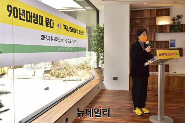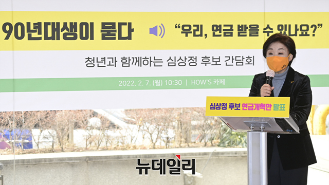 심상정 정의당 대선후보가 7일 오전 서울 여의도 하우스카페에서 연금개혁안을 발표하고 있다.