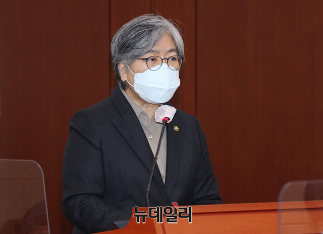 정은경 질병관리청장이 7일 오전 국회에서 열린 보건복지위원회 전체회의에서 의원 질의에 답변하고 있다. (사진=공동취재단)