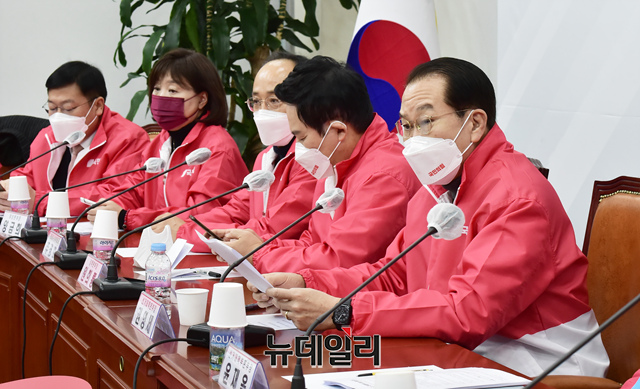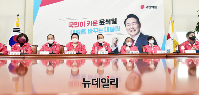 권영세 국민의힘 선대본부장이 7일 오전 국회에서 열린 국민의힘 선거대책본부 회의 참석해 발언을 하고 있다. (사진=공동취재단)