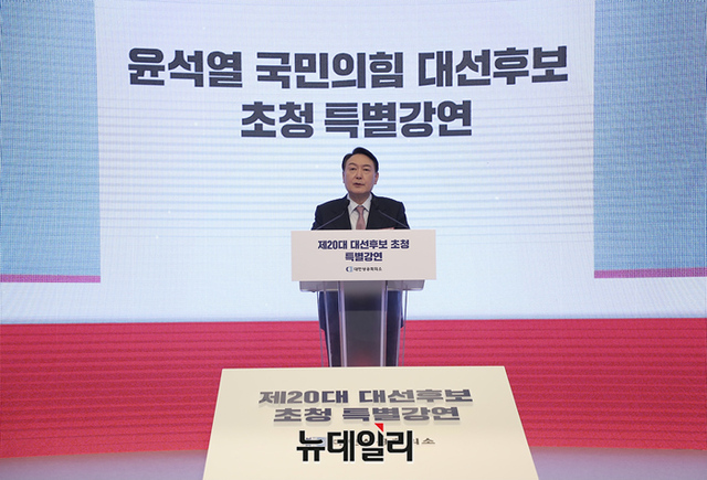 윤석열 국민의힘 대선후보가 7일 오후 서울 중구 대한상공회의소에서 열린 '제20대 대선후보 초청 특별강연'에서 발언하고 있다. (사진=윤석열 캠프)