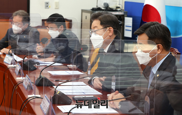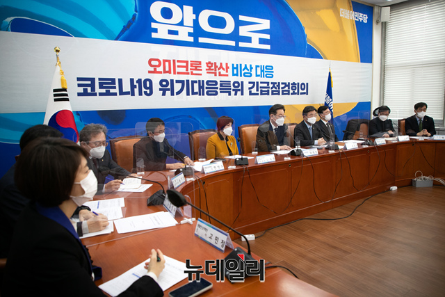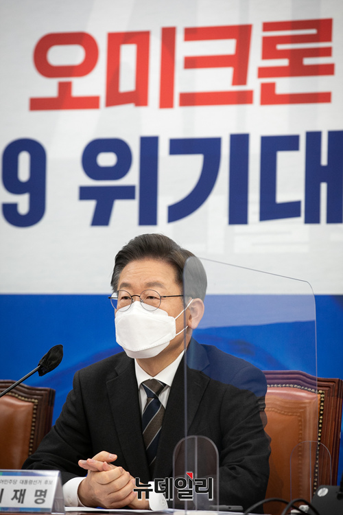 이재명 더불어민주당 대선후보가 8일 오전 국회에서 열린 코로나19 위기대응특위 오미크론 대응 긴급점검회의에서 발언하고 있다. (사진=공동취재단)