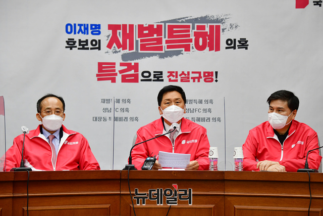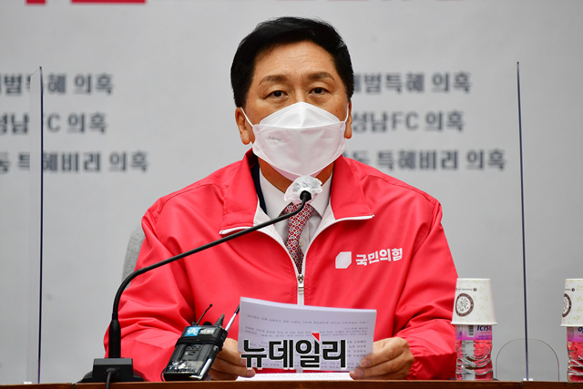 [포토] 이재명 대선후보 관련 발언하는 김기현 국민의힘 원내대표