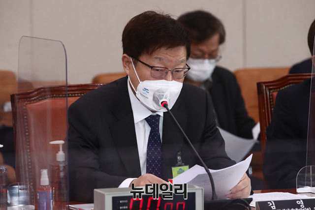 김영주 2030부산세계박람회 유치위원장이 9일 오전 국회 산업통상자원중소벤처기업위원회 회의실에서 열린 '2030 부산세계박람회 유치지원 특별위원회' 전체회의에 참석해 인사말을 하고 있다. (사진=공동취재단)
