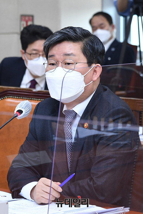 전해철 행정안전부 장관이 9일 오전 국회에서 열린 행정안전위원회 전체회의에서 의원들의 질의에 답변하고 있다. (사진=공동취재단)