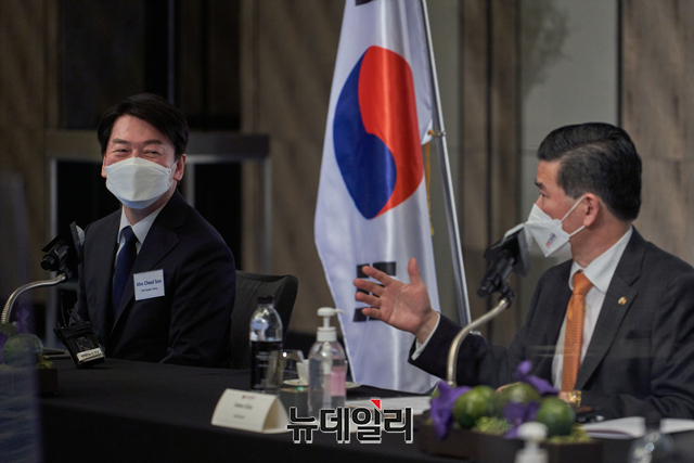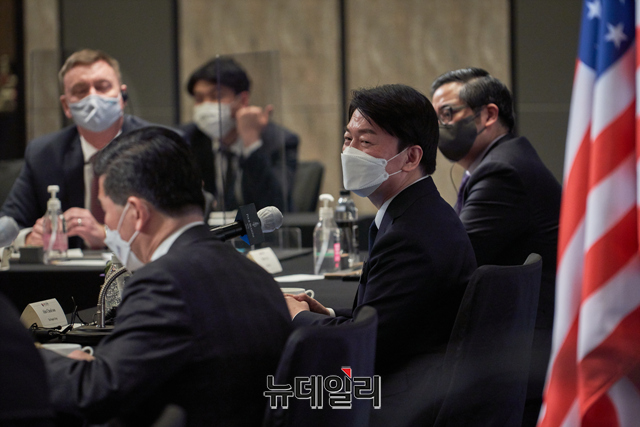 [포토] 주한미국상공회의소 간담회 참석한 안철수 후보