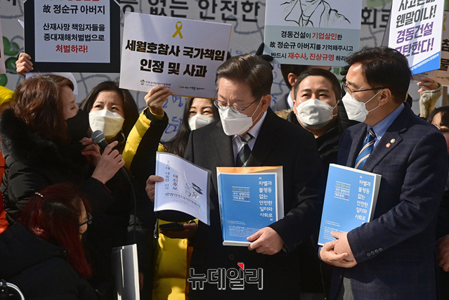 [포토] 생명안전 약속식, 피해자 대표단 만난 이재명