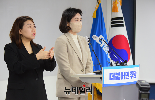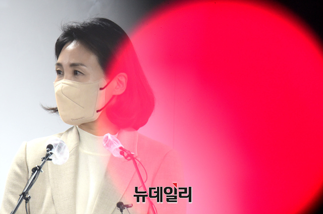 이재명 더불어민주당 대선 후보의 배우자 김혜경 씨가 9일 서울 여의도 중앙당사에서 과잉의전 논란에 대해 사과 기자회견을 갖고 있다.