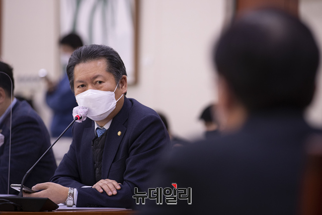 정청래 더불어민주당 의원 10일 오전 국회에서 열린 문화체육관광위원회 전체회의에서 김현모 문화재청장에게 질의를 하고 있다.