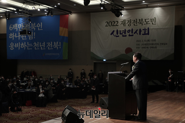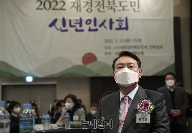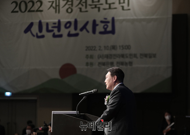윤석열 국민의힘 대선후보가 10일 오후 서울 서초구 더케이호텔에서 열린 재경전라북도민회 신년인사회에 참석해 발언하고 있다. (사진=윤석열 캠프)