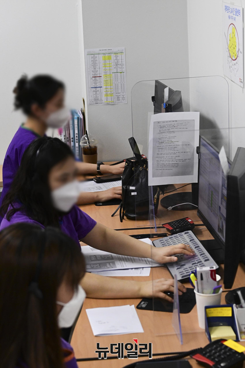 서울시가 동부병원과 서남병원에서 24시간 '재택치료 의료상담센터' 운영 체계를 가동한 10일 오후 서울 동대문구 동부병원 재택치료 의료상담센터에서 의료진들이 업무를 하고 있다.서울시는 2월 10일부터 재택치료 체계를 개편해 집중관리군 중심으로 모니터링을 시행하고, 일반관리군 관리는 동네 병·의원과 협력체계로 전환하겠다고 밝혔다.