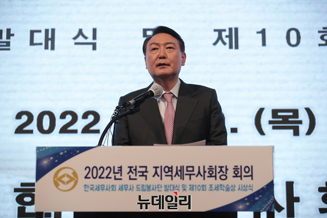 [포토] 세무사 봉사단 발대식 참석한 윤석열 대선후보