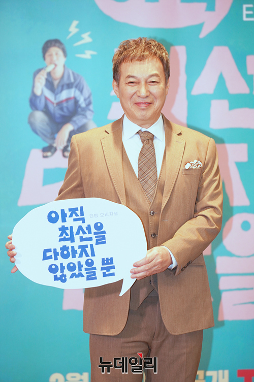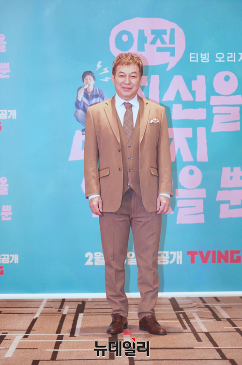 배우 김갑수가 11일 오전 온라인으로 열린 티빙 오리지널 '아직 최선을 다하지 않았을 뿐(연출 임태우, 극본 박희권, 박은영)' 제작보고회에서 포토타임을 갖고 있다.