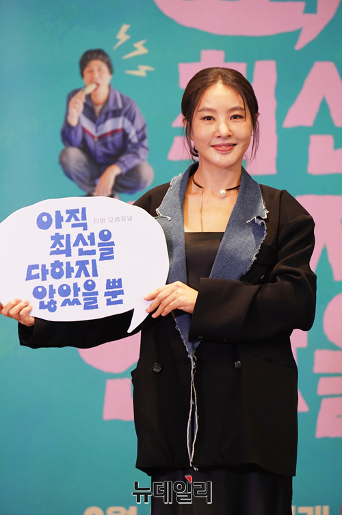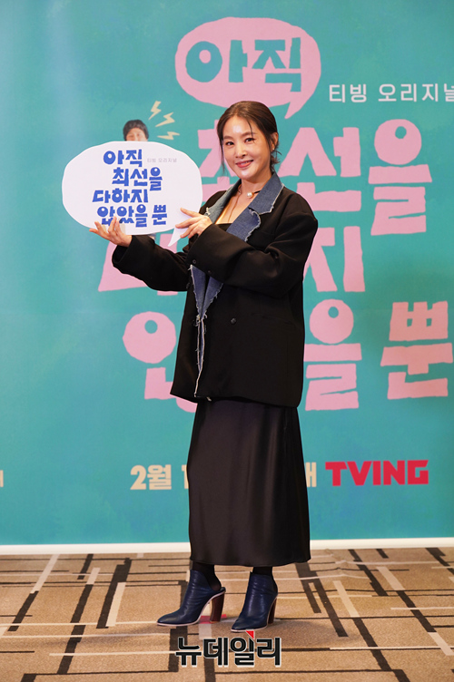 배우 박지영이 11일 오전 온라인으로 열린 티빙 오리지널 '아직 최선을 다하지 않았을 뿐(연출 임태우, 극본 박희권, 박은영)' 제작보고회에서 포토타임을 갖고 있다.