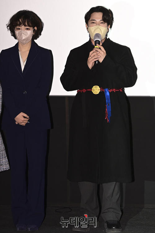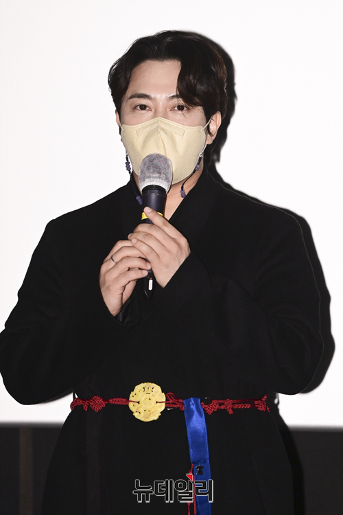 국악인 겸 배우 이봉근이 11일 오후 서울 용산구 CGV용산아이파크몰에서 열린 영화 '광대:소리꾼(감독 조정래)' 언론배급시사회에서 무대 인사를 하고 있다.