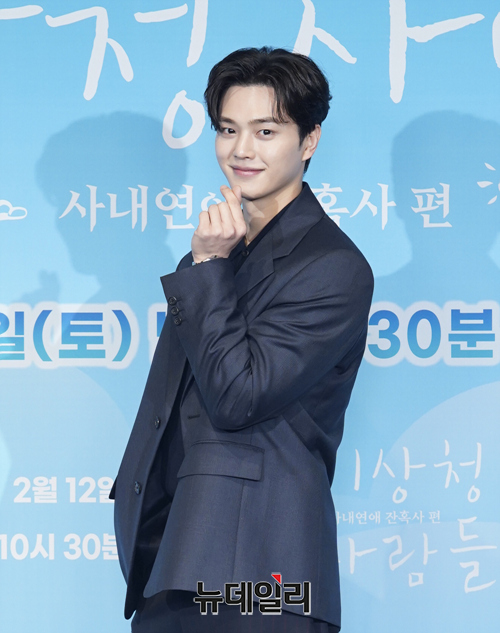 배우 송강이 11일 오후 온라인으로 열린 JTBC 토일드라마 '기상청 사람들 : 사내연애 잔혹사(연출 차영훈)' 제작발표회에서 포즈를 취하고 있다.